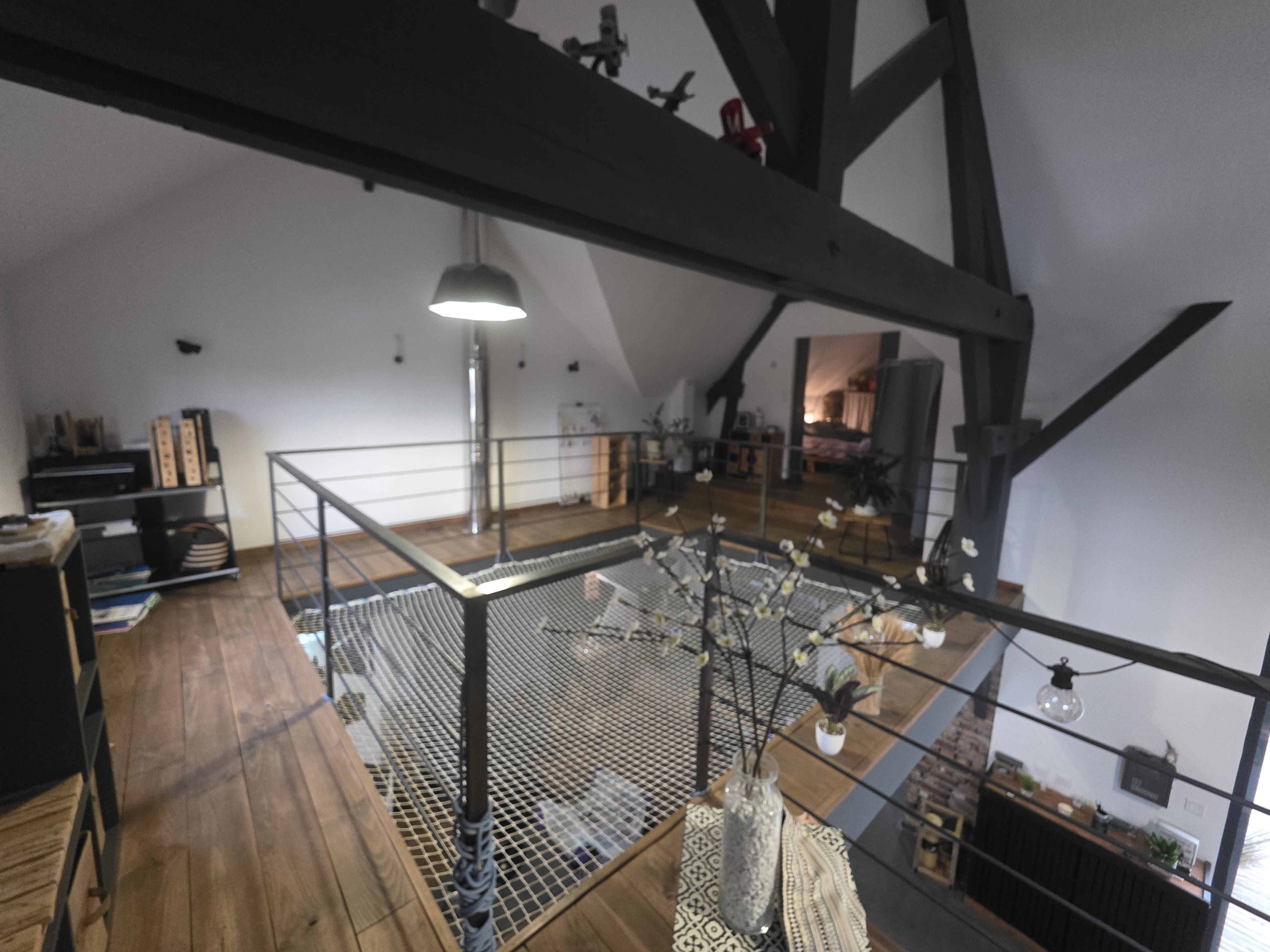 - Une grande pièce palière style mezzanine, ouverte sur le salon/séjour, parfaite pour un espace bureau, détente ou bibliothèque