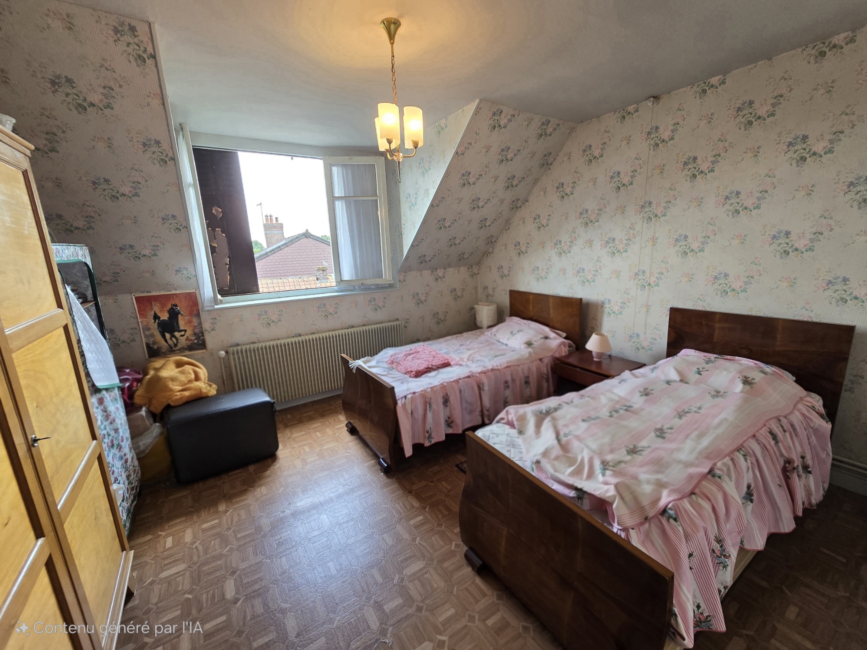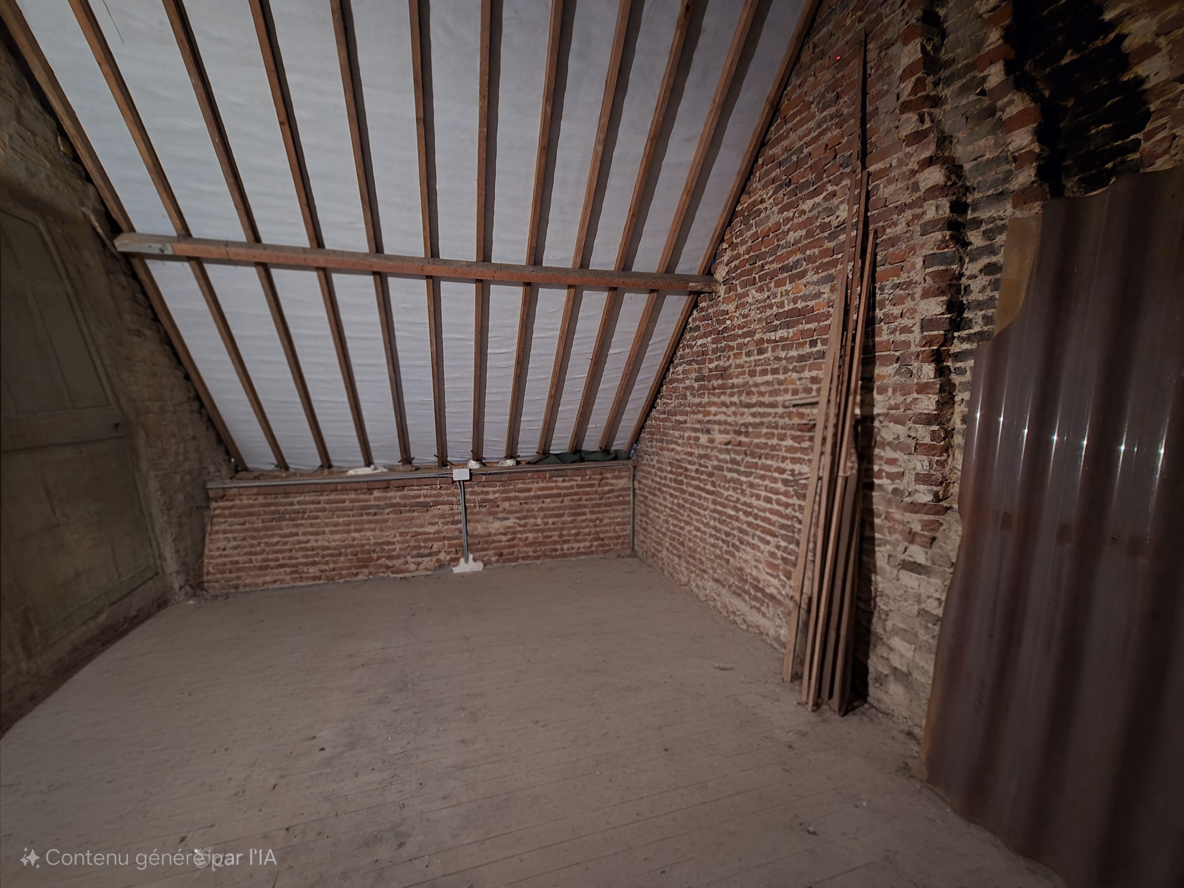 A l’étage : une chambre, un grand grenier.