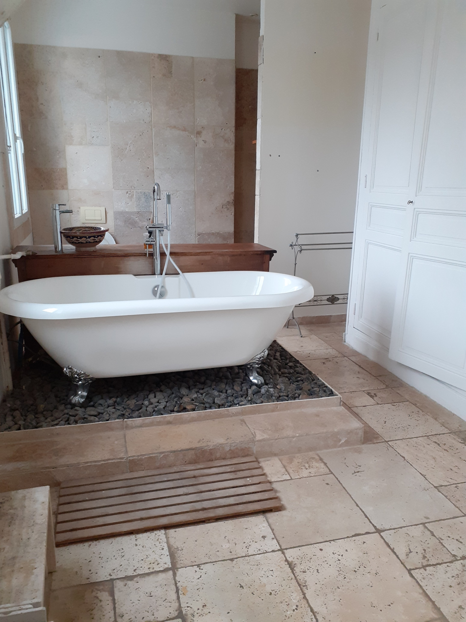 Au 1er étage : dégagement avec nombreux rangements, une suite parentale avec chambre de 20 m² et salle de bains de 15 m² avec lavabo, baignoire, douche et wc.