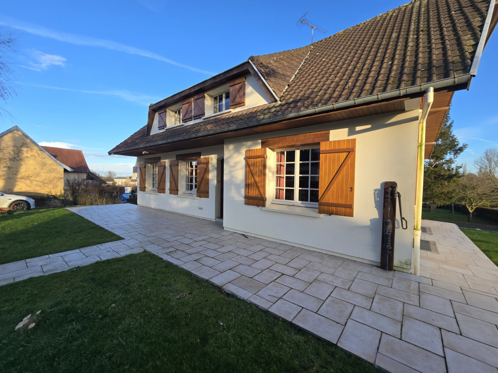 Terrasse carrelée, portail récent motorisé, grand jardin.