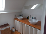À l’étage, l’espace nuit se compose de trois belles chambres, dont une suite parentale avec grand dressing, d’une spacieuse pièce palière pouvant servir de coin détente ou bureau, et d’une salle d’eau avec WC.